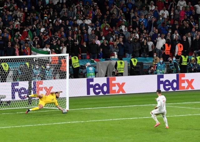 但一切良好的发挥,最后都抵不上点球大战的罚失。罚丢这个点球,也让莫拉塔再一次限于天使和魔鬼的双重面孔当中。点球大战中,莫拉塔被安排在第四个出场,他的选择是打向自己的右侧下方。但谁也没有想到的是,面对唐纳鲁马,莫拉塔的点球踢得却有些绵软无力,而且并没有要到最刁钻的角度,这使得意大利得年轻门神轻松地将球拒之门外。